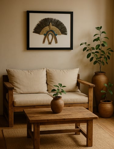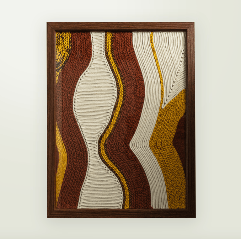 Cada obra é desenvolvida à mão com calma usando materiais regionais brasileiros, como sementes nativas, linhas, minerais, madeiras e palhas. As obras elaboradas contam histórias, carregando significados e emoções com muita intenção junto à beleza do imperfeito.
